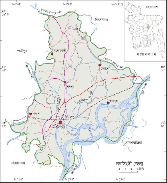 Narsingdi district city stands on the bank of the Branch of Meghna and located at adjacent to the Dhaka-Sylhet National Highway. It was established in the 15th century. It is Imaging that Raza Narshinha was established a small nagar named Narshingha pur by the side of old Bramma Putra. Narsingdi comes from the king of Narsigha with "di" then it becomes Narsingdi.