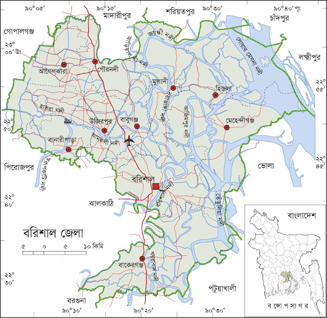 Barisal district is criss-crossed by plenty of rivers that earned her the nickname 'Dhan-Nodi-Khal, Ei tine Barisal' (rice, river and canal built Barisal). Barisal is located in south-central Bangladesh, formerly a district called Bakerganj, it is now a division. The town lies in the Ganges (Padma) River delta on an offshoot of the Arial Khan River (Kirtonkhola). Barisal town was under the control of the Roychoudhury family, which now has moved to Calcutta. Incorporated as a municipality in 1876 and upgraded to city corporation in 2002.It is linked by steamer with Dhaka (73 miles [117 km] north) and with Chittagong to the southeast.